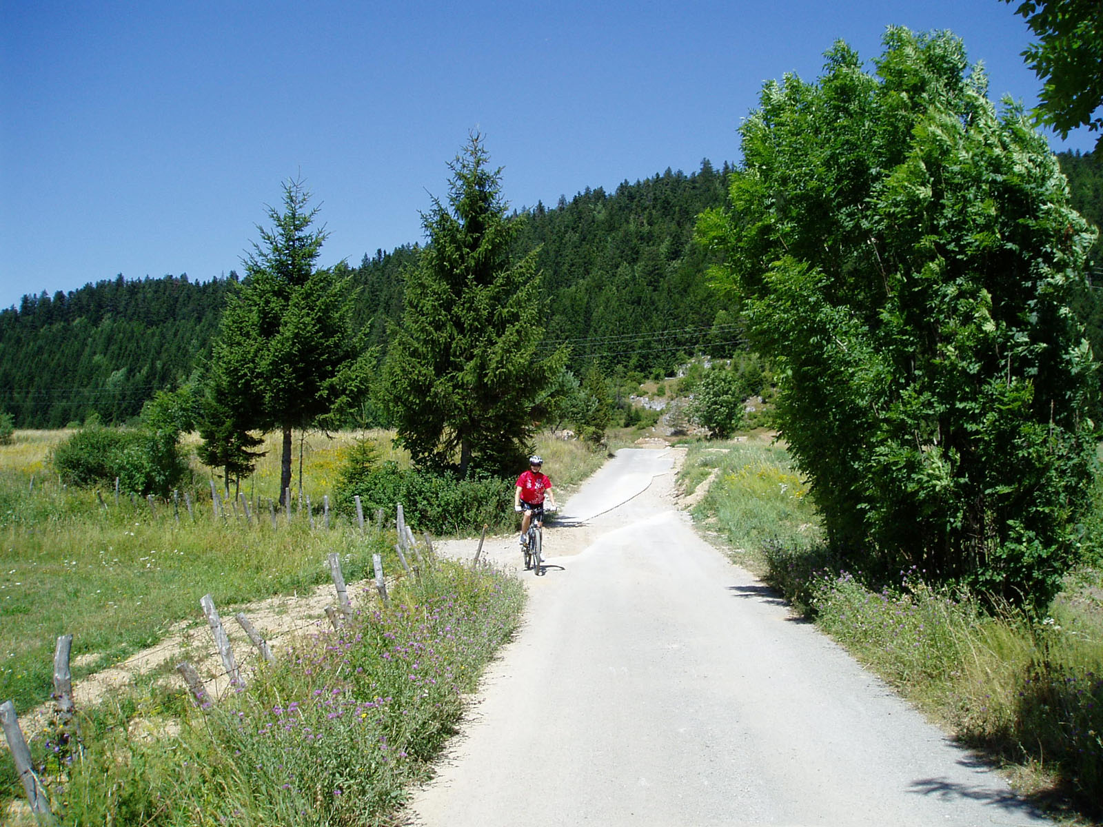 Unatoč brojnim alternativama, Goranska biciklistička transverzala će vas povesti s glavnog križanja kod Turističkog ureda na drugu stranu Karolinske ceste, odnosno lijevo uz uspon sv. Antona, sveca koji je i zaštitnik Fužina. Nakon završetka 300 metara dugog uspona još jednom ćete moći doživjeti sve čari i boje jezera Bajer s lijeve strane dok će vam s desne strane kao na dlanu biti Ličko polje. Nakon još jednog kraćeg uspona prelazite prijevoj i ulazite u selo Vrata, tipično goransko naselje s dugim nizom kuća s obje strane uz glavnu cestu. Na izlazu iz Vrata, očekuje vas željeznički tunel s čije se druge strane nalazi ulaz u Belo Selo i „Edukativni planinski vrt Karoline“ gdje možete saznati sve o flori i fauni Gorskog kotara, ali i naučiti nešto o uzgoju šumskih plodova te, naravno, i degustirati neke od proizvoda Obrta „Borovnica“. Ukoliko vam se vrt dopadne i poželite ostati koji dan duže, možete i prespavati u apartmanu koji se nudi.